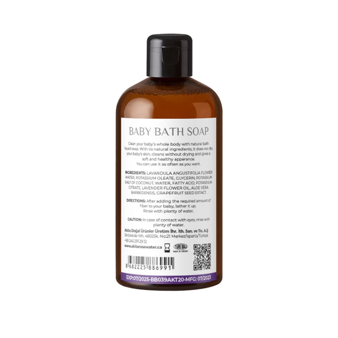 Akita's All Natural Baby Bath Shampoo Lavender is a gentle, soothing shampoo crafted specifically for the delicate skin and hair of babies. Its formula, enriched with natural ingredients, promotes a calming and relaxing bath time experience. Lavandula Angustifolia, both in flower water and oil forms, provides a mild lavender scent known for its calming properties. Potassium Oleate and Coconut Fatty Acid Salts offer gentle cleansing, ensuring the baby's skin and hair remain soft and nourished. Glycerin and Aloe Barbadensis Leaf Juice contribute to moisturizing and soothing the skin, while Citrus Grandis Seed Extract acts as a natural preservative and antioxidant, protecting the baby's skin from harmful environmental elements.