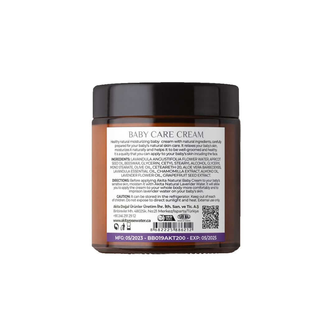 Akita Baby Care Cream is a soothing and gentle formulation designed specifically for the delicate skin of babies. Infused with Lavandula Angustifolia Flower Water, this cream provides calming and anti-inflammatory benefits, making it perfect for sensitive skin. Prunus Armeniaca Kernel Oil and Olea Europaea Fruit Oil deeply moisturize and nourish the skin, ensuring it remains soft and supple. The presence of Cetearyl Alcohol and Glyceryl Stearate enhances the texture, making the cream easy to apply.