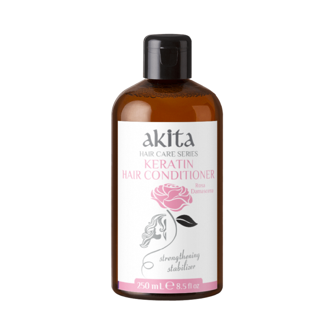 Apply Conditioner: Squeeze a generous amount of Akita All Natural Hair Conditioner Rose with Herbal Keratin into your palm. Distribute evenly throughout your hair, focusing on the mid-lengths and ends.