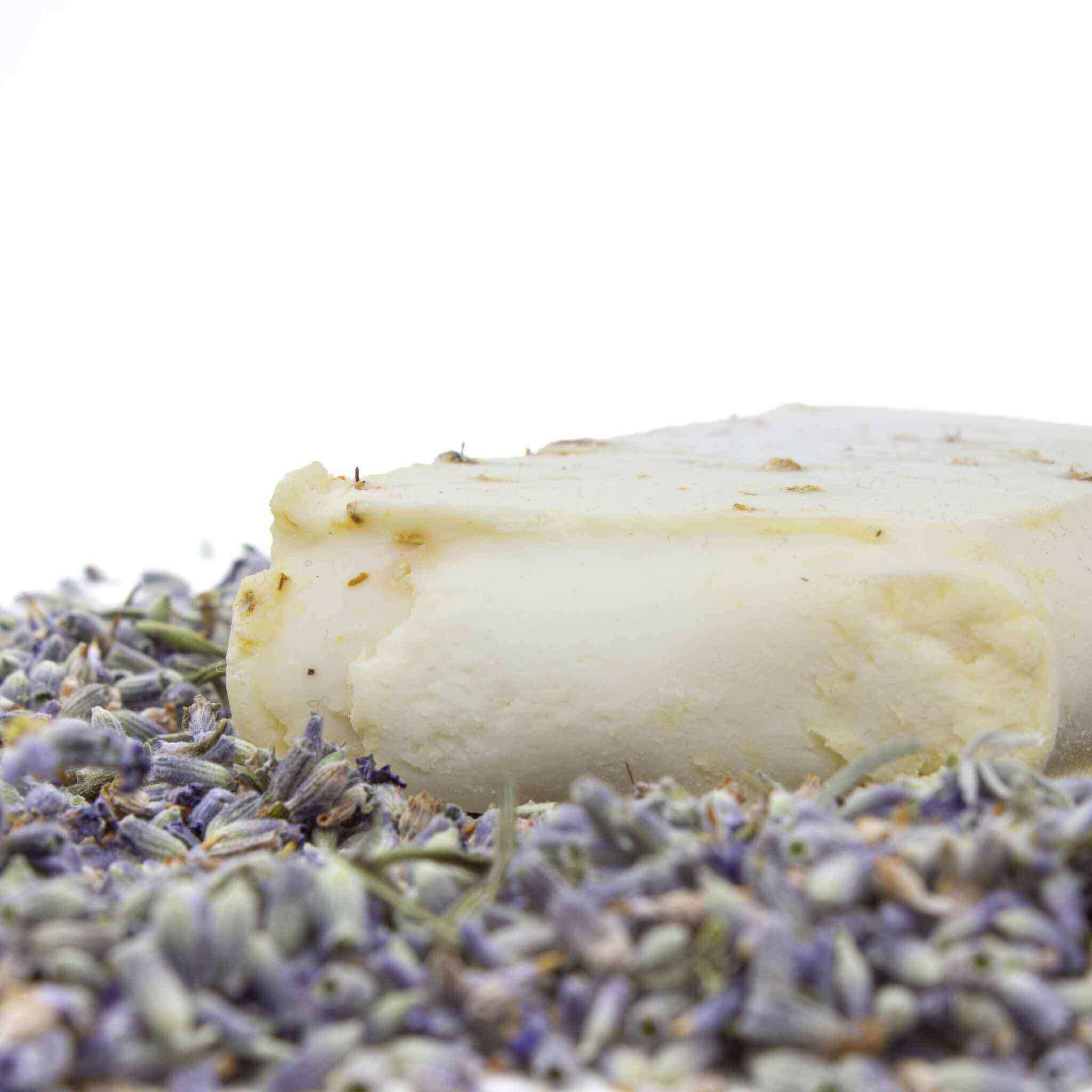 Lather the Soap: Gently lather the Lavender and Goat Milk Soap between your hands or on a loofah.